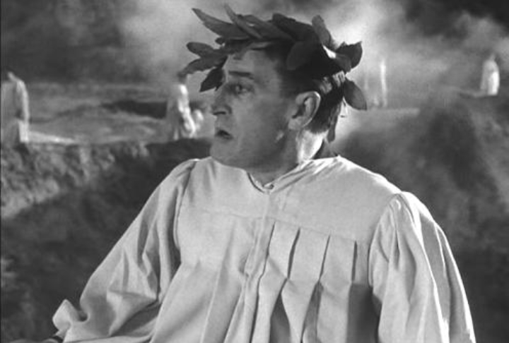 Anche il grande Totò non ha saputo sottrarsi al genio dantesco interpretando nel 1955 Totò all’inferno (sempre reperibile su Youtube) di Camillo Mastrocinque, una pellicola dalle scenografie surreali e dalla battute demenziali. Antonio Marchi (Totò), un disoccupato deciso a farla finita con la vita, annega accidentalmente in un fiume e si ritrova all’inferno, dove è scambiato per Marc’Antonio. Qui incontra Cleopatra suscitando al gelosia del Diavolo. Fuggito dagli Inferi, l’uomo di nuovo sulla terra, deve affrontare una serie di disavventure (si ritrova  in un gruppo di esistenzialisti, sposa una ragazza siamese, si improvvisa rapinatore e tenta di farsi passare per pazzo).  Risvegliatosi all’improvviso Antonio scopre fortunatamente di aver sognato dopo essere svenuto per una caduta. Infine Pier Paolo Pasolini nel suo Uccellacci e uccellini, 1967, sempre interpretato da Totò, rende omaggio a Dante in una sequenza nella quale vediamo un pullman tappezzato di manifesti che annunciano il “Primo convegno dei dantisti dentisti”.