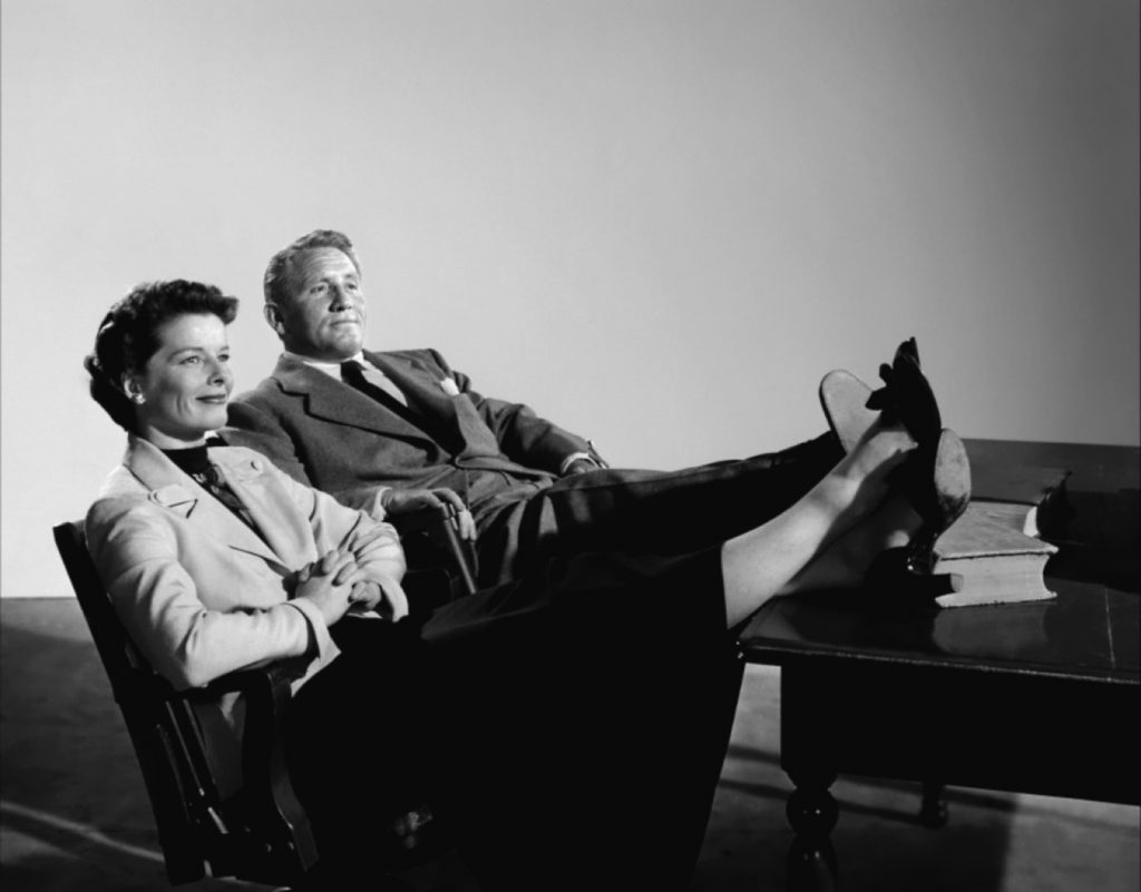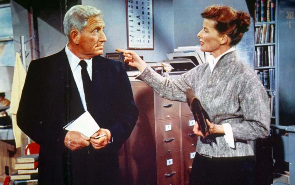 La coppia saprà regalare al pubblico non solo americano anche e soprattutto una serie di commedie spumeggianti, come il già citato La donna del giorno, in cui lei è una raffinata editorialista e lui un ruvido cronista sportivo; La costola di Adamo (1949) di George Cukor, marito e moglie innamoratissimi nella vita, che si trovano su barricate opposte, lei come avvocato e lui come giudice e Lui e lei (1952) ancora di Cukor, con la Hepburn nei panni di un’atleta che si esibisce nei suoi sport favoriti (il golf e il tennis) e lui in quelli dell’allenatore scorbutico che afferma: “Non ha tanta carne addosso, ma quella che ha è roba fina”. Del 1957 è La segretaria quasi privata di Walter Lang, tratto dall’omonima pièce teatrale di William Marchant, una spassosa e brillante commedia sugli albori dell’informatica (il computer dovrebbe sostituire le segretarie di un’azienda). La direttrice di un ufficio ricerche di una rete televisiva (Hepburn) si scontra con l’efficiente esperto (Tracy) inviato in loco per sostituire il personale con un cervello elettronico. Queste commedie per molti storici del costume hanno rappresentato l’America borghese e intellettuale delle grandi città in contrapposizione con la sterminata e conservatrice provincia statunitense.