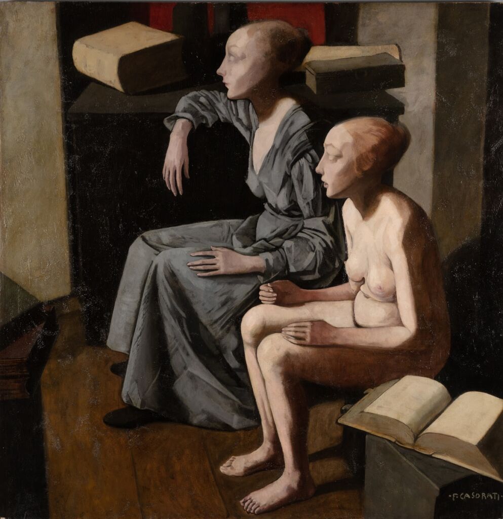 L’affascinante dipinto di Casorati “Le due sorelle (Libro aperto e libro chiuso)” del 1921 è inquadrato in una scena nodale del celeberrimo film di Federico Fellini “La dolce vita” (1960). Il quadro, attraverso il quale Fellini può aver inteso trasmettere all’osservatore una chiave di lettura del film, viene esposto alla Magnani-Rocca a suggerire un insospettabile trait d’union tra il pittore e il regista, cui viene dedicata, nelle sale al piano superiore della Villa, una particolare mostra focus nel trentennale della morte, presentando sontuosi costumi, in prestito dallo CSAC di Parma, realizzati per i film e indossati da celebri attori, come Marcello Mastroianni e Donald Sutherland, locandine dei film, disegni di Fellini oltre a rare fotografie d’epoca.