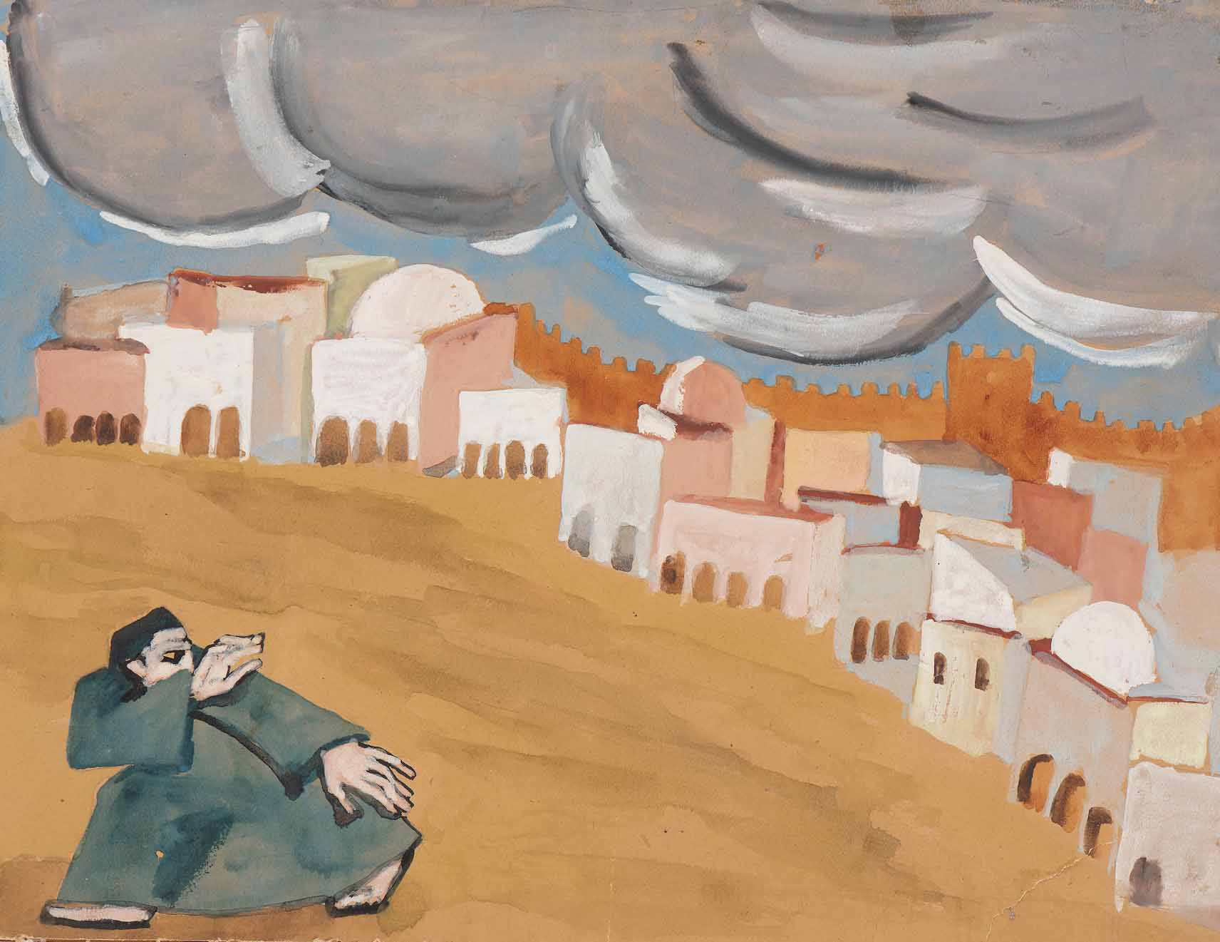 Nello spazio dell’Agorà trova espressione il tema intimo e privato della cultura ebraica, che l’autrice rielabora attraverso formule narrative di grande originalità, caratterizzate da enormi rotoli di carta – alcuni lunghi fino a quattro metri – animati da episodi e personaggi di derivazione biblica.