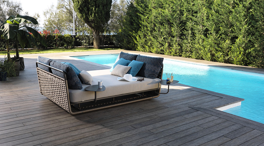 Color terra nella struttura in alluminio, assolutamente innovativa, con corda nautica Sand, Day Bed è il divano da esterni (7.686 euro nel modello senza baldacchino e telo parasole ) che arreda un giardino, un grande terrazzo, ma anche un patio. E, se serve, arretra fino al cuore della casa, per diventare letto accogliente per gli ospiti. E’ uno dei prodotti dell’azienda Roberti Rattan srl (31020 Corbanese di Tarzo Z.I. (Treviso) Italy Tel. +39.0438.933022 Fax +39.0438.933005 info@robertirattan.com), che a una quarantina di chilometri da Treviso, festeggia quest’anno i 55 anni di attività negli arredi per esterni e da giardino. Un’azienda italiana, dunque, con prodotti in linea con il design e il buon gusto italiano che piacciono ovunque nel mondo (la sua produzione si trova alle Hawaii e in California, a Malaga come a Tenerife). Un bell’oggetto da acquistare o da tenere momentaneamente nel libro dei desideri, se prima occorre procurarsi lo spazio dove collocarlo!