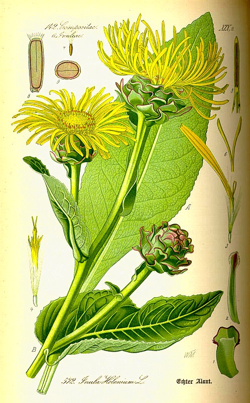 Dal notiziario Buteyko della dott. Ferraro: “Lo studio approfondito della fitoterapia (occidentale, cinese e giapponese) mi ha spesso portata, in questo Notiziario, a segnalare che, a parte la misura principale ( normalizzazione del modo di respirare) varie piante possono dare un aiuto supplementare sia per l’asma sia per altri problemi delle vie respiratorie. Una delle piante con maggiori effetti benefici è l’enula campana (Inula Helenium), contenuta anche in vari prodotti della medicina ayurvedica. Oltre che per l’asma e la bronchite, è efficace, come hanno dimostrato dei ricercatori in Irlanda (Cork Institute) nel sopprimere oltre 300 varietà di stafilococco, compreso il MRSA (tra i più pericolosi in quanto resistente a quasi tutte le varietà di antibiotici, compresa la meticillina, spesso impiegata appunto per contrastare i batteri resistenti a tutti gli altri antibiotici). Il principio attivo, di questa pianta, l’elenina, calma inoltre la tosse, fluidifica le secrezioni bronchiali, e ha un effetto disinfettante sulle vie respiratorie. Inoltre fluidifica e stimola la secrezione biliare, aumenta la diuresi, elimina parassiti intestinali ed è utile per il trattamento di fegato e reni, per disturbi della cistifellea, calcolosi epatica e renale, gotta, artrite e scarsa secrezione urinaria con iperazotemia. Quanti tesori vi sono ancora da scoprire nelle nostre piante!”