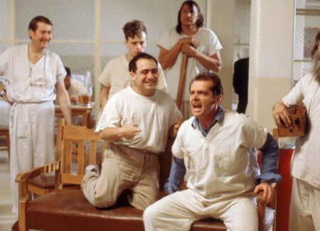A parte il “divo” Jack Nicholson, interprete già affermato da una mezza dozzina d’anni, il resto del cast di Qualcuno volò sul nido del cuculo, è formato da ottimi attori destinati a successive importanti carriere, ma ancora semisconosciuti al momento di interpretare i vari personaggi di quest’opera. Louise Fletcher era al suo quarto film, Dany De Vito al terzo, Will Sampson, Brad Dourif e Vincent Schiavelli al secondo, Christopher Lloyd all’esordio. Accanto a loro alcuni buoni caratteristi [il caratterista è un attore generico, chiamato a interpretare i ruoli più disparati, ma sempre in parti secondarie ndr] costituiscono l’ossatura della troupe. Tutto ciò per dire che è stata sicuramente l’abilità registica di Forman a creare sul set un insieme omogeneo e variegato allo stesso tempo capace di interpretare al meglio i vari ruoli nel microcosmo di un istituto di ricovero per persone mentalmente disturbate nonché il relativo personale medico e paramedico. Un microcosmo capace di rappresentare però una realtà più vasta, la realtà esterna, coloro che, pur stando fuori dal manicomio, forse non sono meno “pazzi” dei reclusi. Emblematica, al proposito, l’improvvisata escursione in barca organizzata da McMurphy (Nicholson) con i ricoverati del suo reparto, spacciati per stravaganti ma dottissimi docenti universitari.