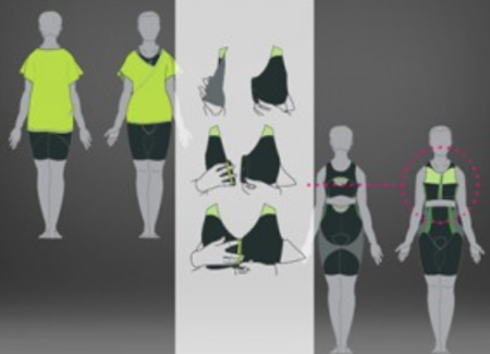 Per tutte queste ragioni abbiamo pensato a degli abiti studiati appositamente per i Senior, tenendo conto dei bisogni e delle esigenze di un pubblico adulto anche dal punto di vista fisico e percettivo, progettando così abiti comodi, versatili, capaci di proteggere il fisico senza costringerlo ma garantendogli sempre la più totale libertà. Abbiamo progettato dei tessuti e delle finiture che presentano determinate texture tattili capaci di agire a livello cutaneo proprio dove avviene il lavoro muscolare profondo, in modo da amplificare le sensazioni provate durante l’attività fisica e quindi riuscire a far coscientizzare l’esercizio e la motricità all’utente. Oltre ad un approccio tecnico e percettivo sui materiali abbiamo deciso di integrare direttamente nelle fibre dei tessuti dei sensori flessibili capaci di rilevare battiti, pressione, temperatura corporea e lavoro muscolare, e di inviare continui feedback ad unico device portatile, in modo da avere sempre sotto controllo il proprio corpo durante la pratica sportiva e non solo.