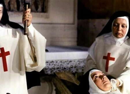 Il riferimento alle eresie vere e proprie ha a sua volta lo scopo di mostrare che, a partire dal proprio interno, la Chiesa è stata portatrice di spade, non di pace, ossia fomite di lotte e divisioni. A tutto ciò Buñuel non contrappone un ideale di umanità felice, non bestemmia Dio neppure attraverso la figura del Divin Marchese, messo in scena qui per la prima (e unica) volta come personaggio. L’inane professione di ateismo compiuta da Sade si chiude con una battuta estremamente significativa, rivolta alla giovane che il depravato signore ha rinchiuso in una cella: «Ah!… Se il tuo Dio esiste, Thérese, quanto lo odio!» In questo odio verso Dio non è difficile legge l’odio che l’uomo e, talvolta, persino il credente, prova verso il male presente nel mondo trasferito a Colui che non ne impedisce il diffondersi.