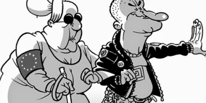 Sagace, amara, diretta. La comic strip che si è aggiudicata il concorso "Una vignetta per l’Europa 2014" ritrae un'anziana Europa cieca, accompagnata ad attraversare le strisce da un Naziskin.Pubblicato il 13/08/2015