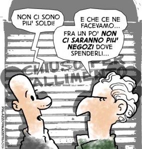 Nel 2012 dunque, visto il perdurare della diminuzione dei consumi, le cose non cambieranno certo in meglio. Anzi. Pur nella difficoltà di fornire stime e dati in questo settore, la differenza tra imprese nate e cessate dovrebbe far registrare un probabile peggioramento rispetto all’ andamento del 2011: da 18 a 20 mila nel solo comparto delle vendite al dettaglio. Cosa che vorrebbe dire la chiusura, nel corso d’anno, di 65 mila negozi.