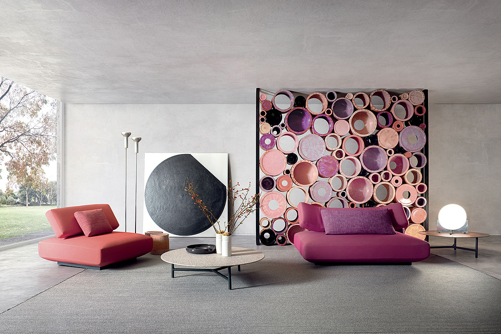 Si tratta invece di un ‘ritorno alle origini’ per Pedrali, che arricchisce le sue collezioni da interno con un divano (Nolita) e una seduta (Panarea) progettati specificamente per esterni, così come i suoi primi arredi prodotti negli anni ’60. E anche gli arredi di Baxter danno quest’anno il benvenuto a un’intera linea disegnata per gli spazi aperti con linee però adatte a qualsiasi ambiente (grazie alle resistenti essenze lignee di Himba, Hakuna Matata, Bao e Nairobi). E non è casuale che l’ispirazione alla base delle novità di Moroso per la zona soggiorno sia originata dai ciottoli muschiosi delle verdi foreste svedesi, trasformati in morbide forme dal duo Sofia Lagerkvist e Anna Lindgren (Front) con la collaborazione di Kvadrat per il rivestimento in maglia di lana, materiale rinnovabile e sostenibile per eccellenza che l’azienda danese dichiara di produrre con una riduzione nei consumi d’acqua tra l’80 ed il 95% rispetto ai normali cicli manifatturieri. La vera ‘nuova’ tendenza per gli arredi del 2022, sulla falsariga di quanto già visto nell’ultimo Salone prima della pandemia, è infatti una rinnovata ed ancor più convinta attenzione per la sostenibilità in tutte le sue forme, che, a partire dalla ricerca di nuove e vecchie materie prime organiche o generate dagli scarti di lavorazione di altre filiere, viene ora declinata in tutte le sue forme, ma che segna comunque un chiaro punto a favore dei materiali della tradizione (tessili ed essenze lignee) che si avvantaggiano ora sui materiali di sintesi (e in primis sulle materie plastiche).