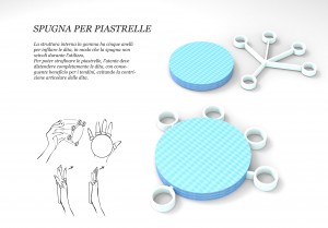 SPUGNA PER PIASTRELLE: La struttura interna in gomma ha cinque anelli per infilare le dita, in modo che la spugna non scivoli durante l’utilizzo. Per poter strofinare le piastrelle, l’utente deve distendere completamente le dita, con conseguente beneficio per i tendini, evitando la contrizione articolare delle dita.