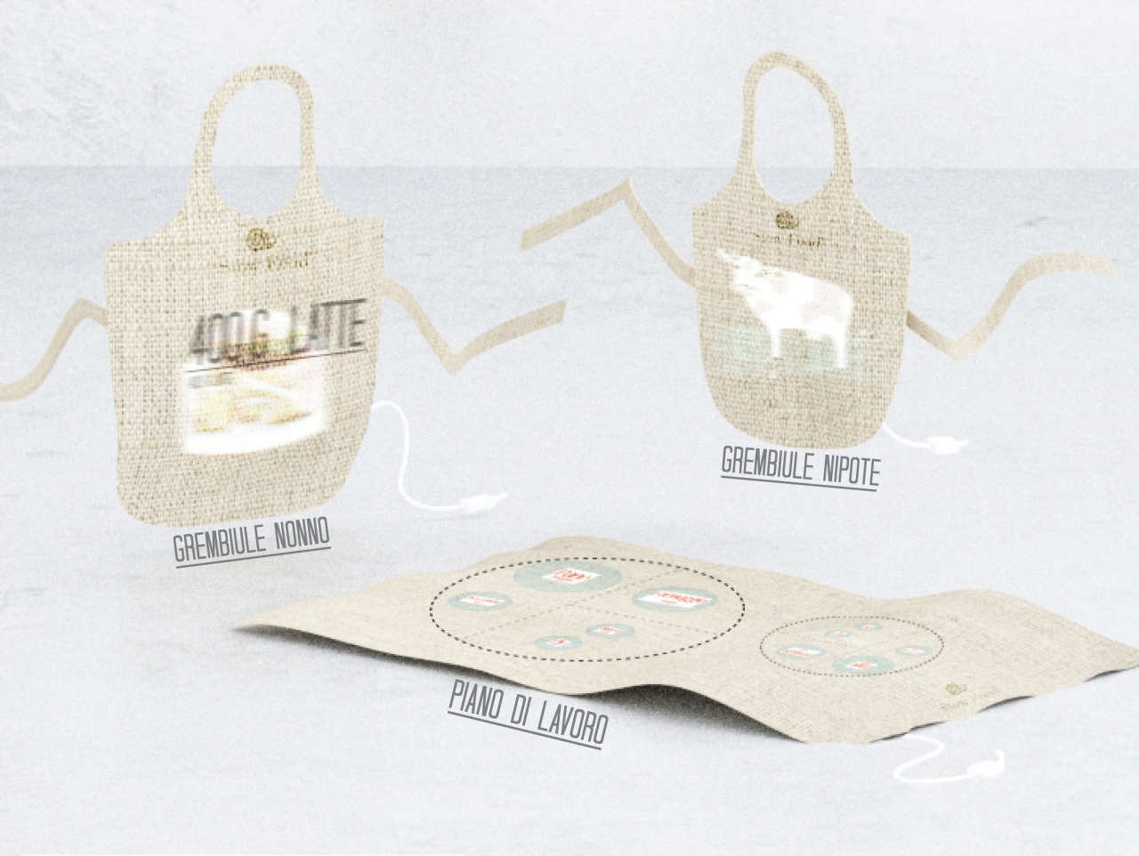 Molto indovinata la serie di oggetti pensati per le azioni condivise. Originale anche la lettura della ricetta, differenziata per difficoltà, sul grembiule del nonno e del nipotino. Un progetto che meriterebbe di essere realizzato e che, a mio avviso, avrebbe un buon successo, soprattutto come strenna. vp