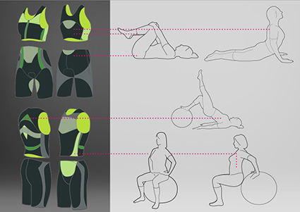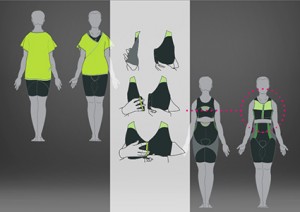 Per tutte queste ragioni abbiamo pensato a degli abiti studiati appositamente per i Senior, tenendo conto dei bisogni e delle esigenze di un pubblico adulto anche dal punto di vista fisico e percettivo, progettando così abiti comodi, versatili, capaci di proteggere il fisico senza costringerlo ma garantendogli sempre la più totale libertà. Abbiamo progettato dei tessuti e delle finiture che presentano determinate texture tattili capaci di agire a livello cutaneo proprio dove avviene il lavoro muscolare profondo, in modo da amplificare le sensazioni provate durante l’attività fisica e quindi riuscire a far coscientizzare l’esercizio e la motricità all’utente. Oltre ad un approccio tecnico e percettivo sui materiali abbiamo deciso di integrare direttamente nelle fibre dei tessuti dei sensori flessibili capaci di rilevare battiti, pressione, temperatura corporea e lavoro muscolare, e di inviare continui feedback ad unico device portatile, in modo da avere sempre sotto controllo il proprio corpo durante la pratica sportiva e non solo.