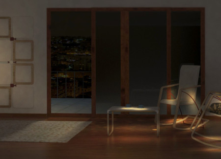 Così i progettisti presentano il loro lavoro: In una società piena di stimoli è necessario ritrovare il tempo del sé. Rituali, percorsi ed emozioni entrano nelle mura domestiche caratterizzando gli ambienti e personificando gli oggetti del vivere quotidiano.Temperatura, luce ed esperienza di deprivazione sensoriale conducono al totale relax del corpo e della mente, per questo motivo abbiamo realizzato una famiglia di arredi che, sinergicamente, amplificano tali sensazioni.Il radiatore elettrico, realizzato mediante un’impiallacciatura in frassino, riproduce matericamente il calore del legno. I moduli quadrati si alternano caratterizzando giochi di volume tra pieni e vuoti e permettono l’alloggiamento di profumatori d’ambiente che rilasciano fragranze sfruttando il calore.Il tavolino, integrando un sistema OLED tramite un’applicazione, permette di riprodurre le colorazioni campione estrapolabili dalle foto che richiamano i nostri ricordi più cari. Il contatto con oggetti posti su di esso emette aloni di luce riconoscendone così la presenza.Il dondolo, tramite la luce pulsata degli OLED, posti sotto il bracciolo, influisce sul ritmo della respirazione e, insieme all’oscillazione della struttura, rilassa il corpo portandolo ad uno stato di assoluto relax. L’arredo, inoltre, assicura la stabilità nell’atto del sedersi e dell’alzarsi, tramite un meccanismo di blocco comandato da un pulsante posto in prossimità del bracciolo che aziona i sostegni posteriori metallici.
