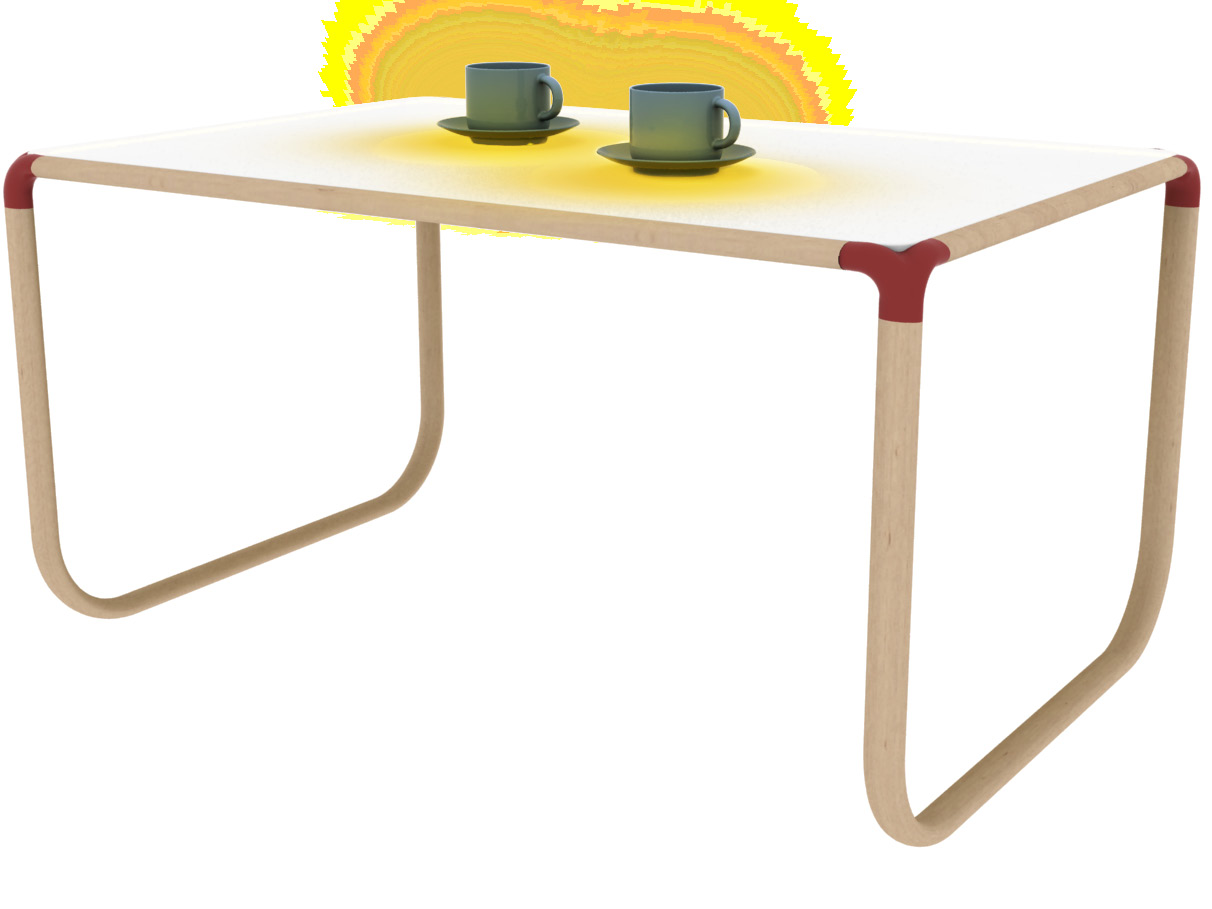 Il tavolino che attraverso un particolare dispositivo cambia colore in relazione per esempio, alla luce che cambia nella stanza o a quella che viene dalla riproduzione di una diapositiva proiettata.