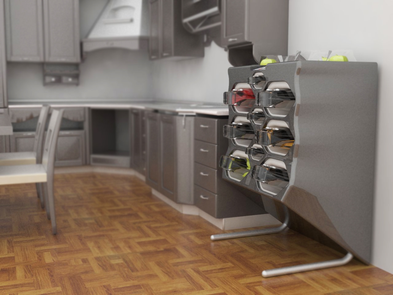 Tale prodotto consentirà di memorizzare le date di inserimento dei prodotti, controllarne lo stato di maturazione ma soprattutto di gestirla, attraverso la combinazione di più specie di prodotti vegetali. Sulla parte superiore sono infatti presenti due gruppi di maturazione, appunto. Formati da tre celle esagonali ciascuno consentono, attraverso le texture forate delle stesse, di dialogare tra di loro attraverso il rilascio e l’assorbimento di etilene tra i vegetali. Una volta che il contenuto di una cella sarà pronto per l’utilizzo sarà possibile estrarla dal gruppo e portarla direttamente in tavola, o sul piano di lavoro della cucina.