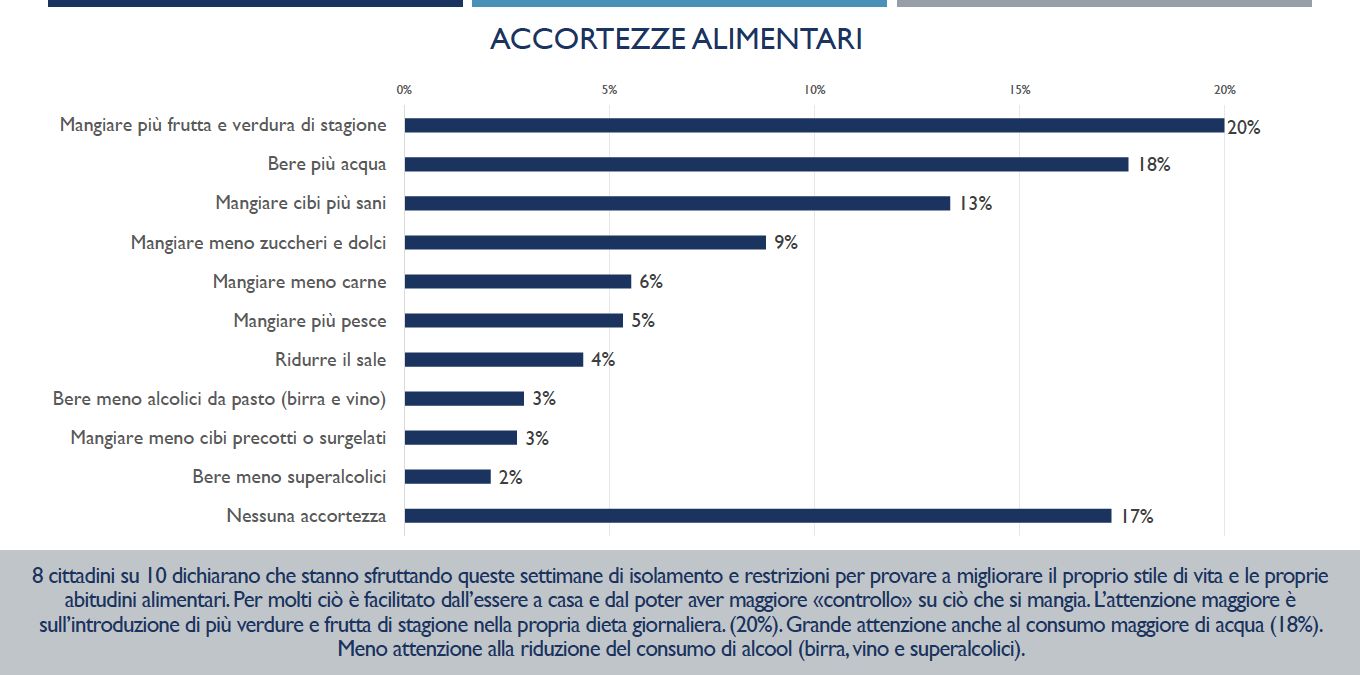 Sono stati resi disponibili i risultati della ricerca lanciata qualche settimana fa dal Politecnico di Milano (professor Emanuele Lettieri): una ricerca nazionale per comprendere come le misure di isolamento, predisposte dai decreti ministeriali per fronteggiare l’emergenza Covid-19, stiano modificando le abitudini alimentari e gli stili di vita dei cittadini italiani.