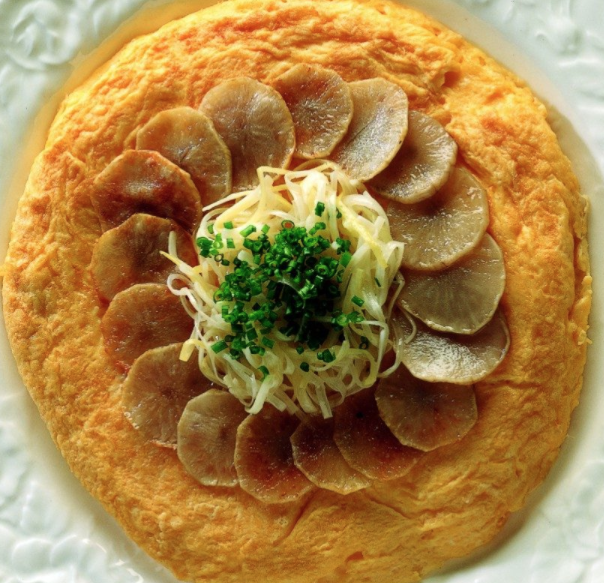 Per preparare la frittata con topinambur lavare accuratamente i topinambur, pelarli e tagliarli a fettine sottili, poi saltarli in padella con un cucchiaino di olio. A metà cottura, aggiunger il porro, solo la parte bianca, anch’esso affettato sottile, salare, pepare e terminare di cuocere per qualche minuto le due verdure. In una ciotola battere le uova, con un pizzico di sale e una macinata di pepe, quindi cuocere la frittata in una padellina antiaderente, senza utilizzare alcun condimento, rivoltandola delicatamente con l’aiuto di una paletta. Servire la frittata completandola con i porri e i topinambur e insaporendola con una decina di fili di erba cipollina tritati molto finemente. (fonte: la Cucina italiana)
