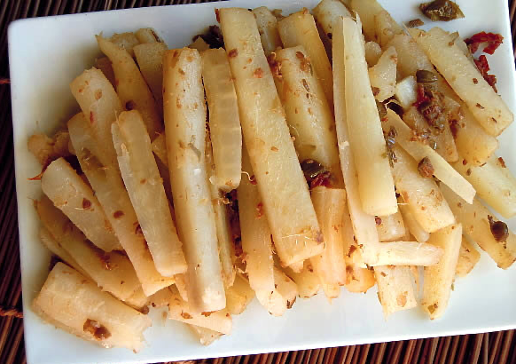 Lavare bene le radici di scorzonera, togliere la buccia scura, lavarle in acqua acidulata con il succo di mezzo limone e lasciarle immerse per un’ora. Toglierle, tagliarle a pezzi e sbollentarle in acqua salata con una manciatina di farina e qualche goccia di limone per mantenerle bianche. Una volta cotte, distenderle in una pirofila. Frullare insieme cetriolini, capperi, prezzemolo, patate lessate e sbucciate, acciughe, uova e succo del mezzo limone, fino a ottenere un composto omogeneo. Attenuare con un po’ di latte e regolare di sapore. Versare la crema sulle radici di scorzonera e servire.