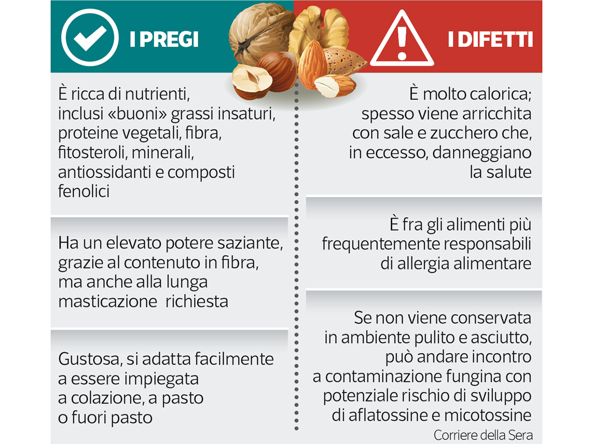 La frutta a guscio resta un alimento da consigliare? “Senza dubbio — afferma Caggiano — dato che è ampiamente riconosciuto il suo ruolo nell’ambito di una dieta salutare. È però essenziale aumentare gli sforzi per ridurre il rischio di esposizione alle aflatossine. Queste, e le micotossine in genere, oltre che nella frutta a guscio, si possono ritrovare in cereali, spezie, caffè, cacao, prodotti lattiero-caseari e carni, se gli animali ingeriscono mangimi contaminati. Nel caso della frutta a guscio, è opportuno incrementare il monitoraggio, specie per quella di Paesi con climi favorevoli allo sviluppo di muffe o con regolamenti meno rigidi dei nostri, ma è importante anche promuovere la produzione locale. Il consumatore, dovrebbe prediligere la frutta secca italiana, variando le scelte, e conservandola in ambiente fresco e asciutto”.