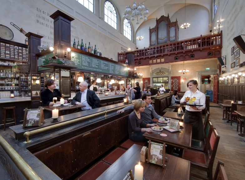 Il caffè Olivier Utrecht è noto in città per il suo ricco menu di birre provenienti dal Belgio, ma si distingue anche per una particolare caratteristica: visto da fuori, si può rimanere ingannati dal piccolo ingresso in mattoni, ma una volta varcata la soglia ci si troverà all’interno di una grande chiesa, caratterizzata da bellissimi soffitti a volta, vetrate artistiche e da un organo antico. Nonostante le chiese siano spesso fredde, qui ci si sentirà a proprio agio, in un ambiente caldo e accogliente.