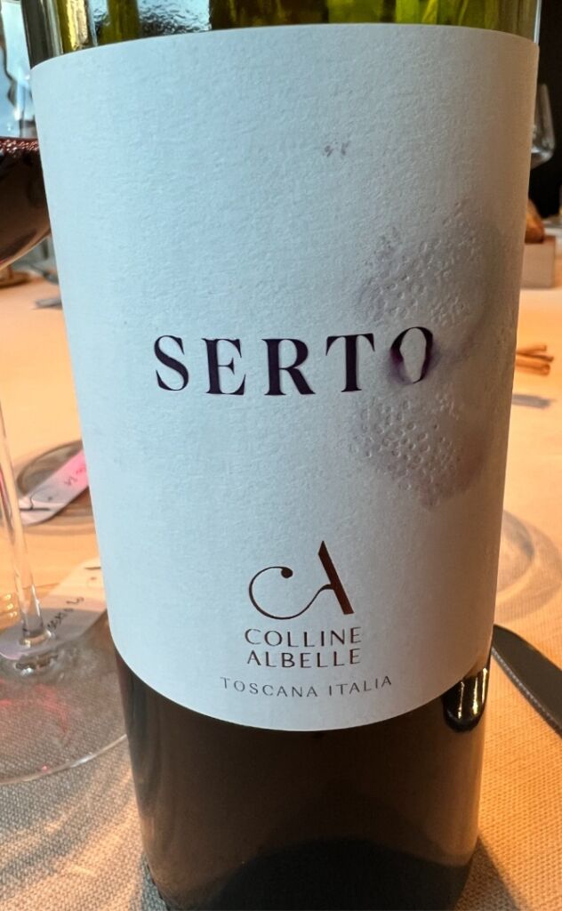 Serto nasce da uve sangiovese in purezza, commercializzato per la prima volta nel 2023 con l’annata 2020. Il nome si riferisce alla corona di alloro utilizzata anticamente dai Romani e oggi dagli studenti al momento della laurea. La fermentazione alcolica si svolge in acciaio e il vino ottenuto è elevato 30 mesi in barrique per ammorbidirne i tannini, quindi affina 6 mesi in bottiglia. Nel calice riflette colore rosso rubino granato. Il profumo floreale e fruttato con sentori balsamici e vanigliati. In bocca è succoso, ricco con ricordi fruttati e balsamici già percepiti in fase olfattiva; i tannini sono ben integrati in equilibrio perfetto con alcolicità e freschezza. Il sorso è piacevolmente lungo.