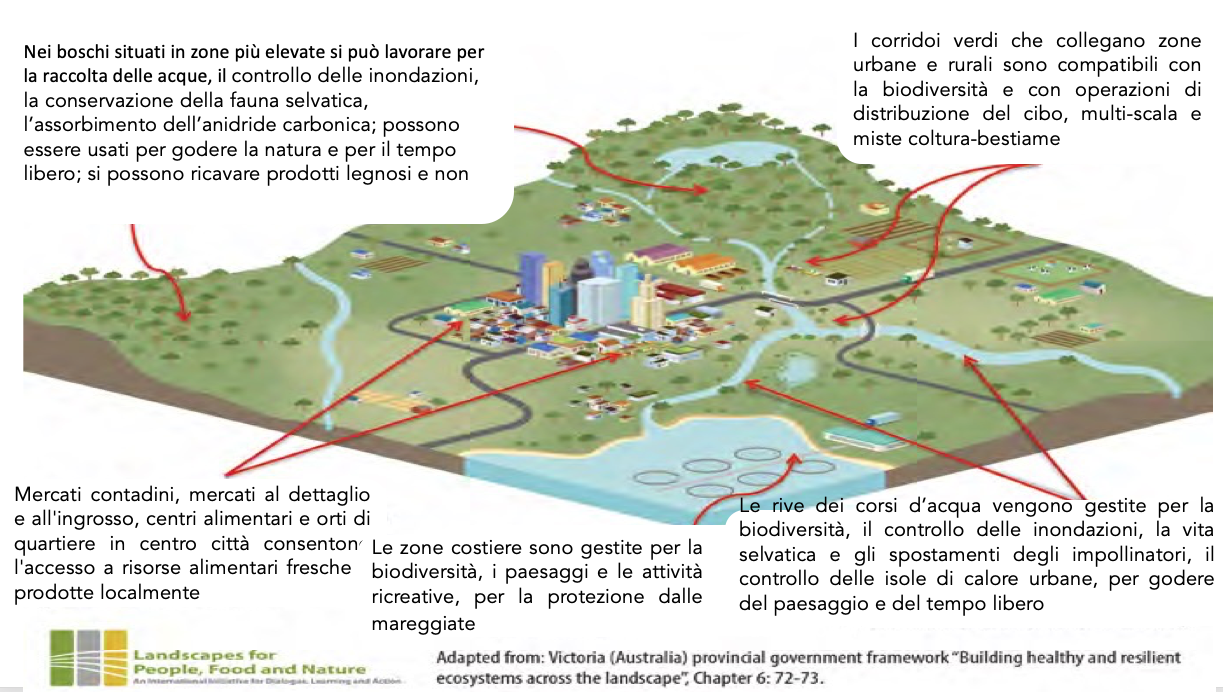 - Zone boschive. Nei dintorni della città vanno mantenute alcune zone boschive, agendo con una accurata manutenzione e utilizzando i loro prodotti.