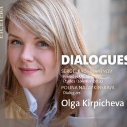 Il programma di questo originale e seducente cd – il primo di Olga – nasce dalla fascinazione che la pianista ha sempre avuto per Rachmaninov e per la sua visione poetica del mondo. Assieme ai suoi Dieci Preludi op. 23 ed agli Études-Tableaux op. 33, Olga presenta i Dialogues (… with myself), una partitura facile all’inizio ma via via più complessa che la sua amica Polina ha scritto su commissione della pianista «ispirandosi allo stile ed al linguaggio musicale di Rachmaninov, ed alle tonalità lussureggianti di cui il compositore ha fatto uso per esprimere la profondità delle sue emozioni».