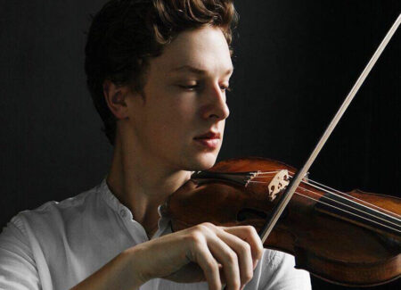 Conor Gricmanis ha 28 anni, ma un’aria di adolescente, che la campagna dello Shropshire (in Inghilterra) ha visto nascere, come una mitologica creatura silvestre, imbracciando il violino che le divinità devono avergli affidato, sin dalla nascita, per dare all’umanità gioia e speranza in un mondo migliore. Come definire il suo virtuosismo? Conor non è un Paganini (non riesco ad immaginarlo in un repertorio romantico, ma forse anche lì ci sorprenderebbe …) né il suo agio nell’ascendere sino ai gioiosi vertici di questa musica che anticipa Schmelzer et Biber ha nulla di esibizionistico: giusto la gioia di ascendere e di vibrare libera nella gioia dell’esistere.