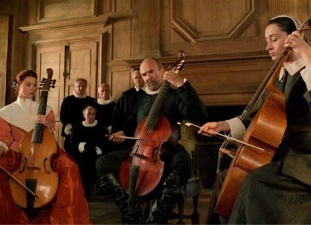 Quasi nulla si conosce della vita di Jean de Sainte Colombe, se non che agli apparteneva alla piccola aristocrazia del Sud-ovest della Francia (forse di Pau, ai piedi dei Pirenei), che non fu musicista di Corte ma che, dilettante illuminato, dava concerti nella sua dimora – sovente in trio, con le sue due figlie – e che fu maestro di gambisti poi divenuti famosi (basti citare Pierre Méliton e Marin Marais). E sui suoi avventurosi rapporti con quest’ultimo – il genio della viola da gamba francese – Pascal Quignard ha scritto un affascinante romanzo – Tous les matins du monde – da cui Alain Corneau ha tratto il bellissimo ed omonimo film (nella foto).