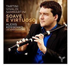 Per questo suo primo cd registrato per Aparté, Alexis Kossenko, che con i suoi Ambassadeurs già abbiamo ammirato in C.P.E. Bach, Georg Philipp Telemann, e Jean-Philippe Rameau, ha scelto un repertorio tutto italiano. E soprattutto ha deciso di alternare il suo elegantissimo, voluttuoso flauto traverso ad un piccante, acrobatico flauto a becco in un programma di rarità barocche di autori noti sopratutto per le loro composizioni violinistiche. Ma il milanese Giuseppe Sammartini, fratello del ben più noto Giovanni Battista, era un virtuoso dell’oboe, pratica che inevitabilmente si associava quella del flauto a becco, ed è per questo strumento soprano che egli compose il delizioso Concerto in Fa maggiore che Alexis ripropone all’ascolto e che ben rappresenta il titolo del cd: Soave e Virtuoso.