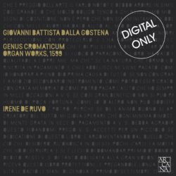 Arcana pubblica questa prima integrale delle sue musiche per organo – delle poche che ci sono pervenute – in edizione esclusivamente digitale (non troverete, cioè, questo disco in negozio, ma potrete scaricarne il contenuto su internet). Irene De Ruvo è la raffinata ed intensa interprete delle 18 Fantasie e delle trascrizioni che Dalla Gostena fece di noti madrigali di compositori suoi contemporanei: Susane un jour, Mais que sert la richesse a l’homme, Pis ne me peult venir (Susanna, un giorno, Ma che serve la ricchezza all’uomo, Peggio non può succedermi).