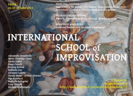 L’Arte dell’improvvisazione, che in altri tempi faceva parta del bagaglio dell’artista – soprattutto musico, strumentista e cantante, ma anche attore o pittore – sarà all’onore dal 22 al 25 giugno nei Corsi che la Scuola Internazionale di Improvvisazione, in partnership con l’Istituto Superiore di Studi Musicali “F. Vittadini” e con l’Associazione Culturale Musicale “Il Demetrio”, organizzerà a Pavia.