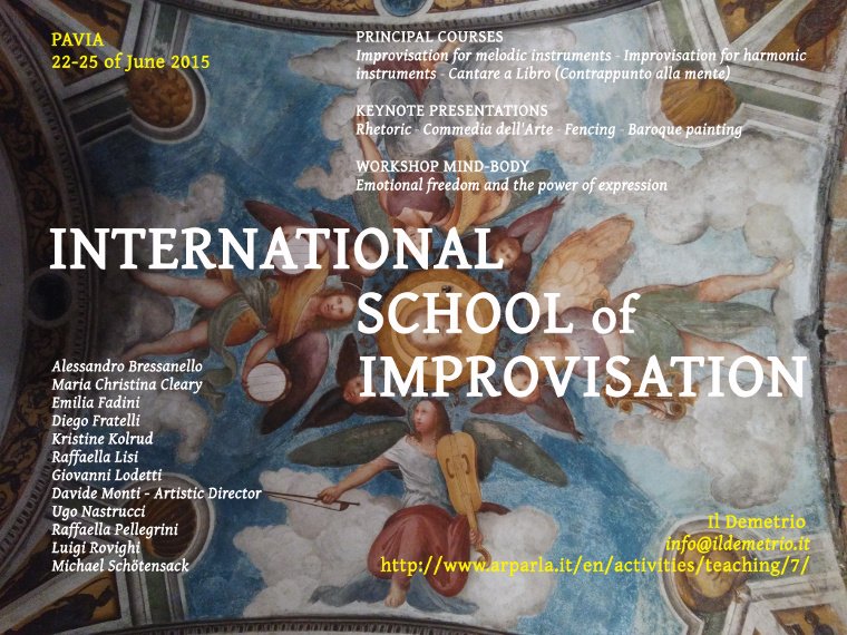 L’Arte dell’improvvisazione, che in altri tempi faceva parta del bagaglio dell’artista – soprattutto musico, strumentista e cantante, ma anche attore o pittore – sarà all’onore dal 22 al 25 giugno nei Corsi che la Scuola Internazionale di Improvvisazione, in partnership con l’Istituto Superiore di Studi Musicali “F. Vittadini” e con l’Associazione Culturale Musicale “Il Demetrio”, organizzerà a Pavia.