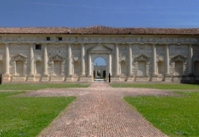 Veniamo alla quarta regola della prospettiva, la più usata: un esempio è la Loggia d’Onore di Palazzo Te a Mantova.