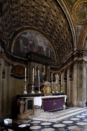 Quando ci si avvicina all’abside dal fianco – la terza fotografia – si nota che l’altare in realtà occupa quasi tutta la profondità.Per quanto sia fedele l’ultima immagine non rende l’impressione che si prova osservandolo dal vivo. In fase di ripresa un effetto simile non sarebbe riproducibile