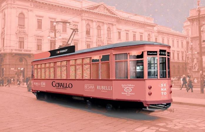 La designer e architetto Cristina Celestino ha scelto di interpretare lo storico tram milanese immaginando un ideale “Cinema Corallo” che circolerà nel cuore di Brera. Il mezzo di trasporto pubblico porta su rotaia una suggestiva sala di proiezione, un vero e proprio salotto viaggiante all’interno dello storico tram 1928, che viene riletto nei suoi interni in chiave contemporanea. Il progetto si ispira al tema del viaggio, declinato come esperienza ai limiti di un mondo onirico e surreale, in una sala cinematografica d’antan. Sono i paesaggi urbani milanesi il soggetto della pellicola che viene idealmente proiettata e che scorre sulle finestre a nastro in coda al tram. Lo spazio è ripartito in due parti, che riproducono due momenti ricorrenti nei teatri e nei cinema. Un foyer, progettualmente inteso come spazio principale, interpretato come una sala d’attesa ovattata e morbida, con divanetti composti e rigorosi, a coprire i finestrini ricercati tendaggi visibili dall’esterno e una moquette intarsiata a pavimento. In coda al tram, dietro una tenda in passamaneria, si accede all’intima sala cinematografica dove, seduti su comodi pouf, i passeggeri-spettatori possono godere di una visione insolita della città di Milano.