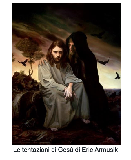 Facendo un confronto tra noi stessi e l’immagine appena descritta, risulta coerente affermare che, in quell’ atteggiamento, Gesù appresenta tutti gli uomini nel momento della fragilità e del limite. E si sa! il Maligno trova sicuramente un buon terreno nella nostra fiacchezza, nelle nostre delusioni, nelle depressioni e nei dolori. Egli compie la sua opera proprio approfittando dei momenti di nostra maggiore fragilità e, attraverso l’inganno e le lusinghe, vuole darci l’illusione di poter condurre la nostra vita in totale indipendenza e autonomia, escludendo Dio e il suo il progetto su di noi.