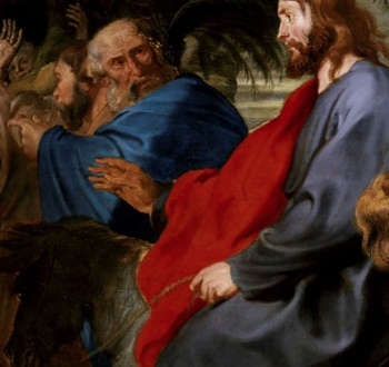 Gesù, dunque, entrando nella “città della pace” su un asino, si conforma alle Sacre Scritture scegliendo una cavalcatura opportuna e regale adatta ad un re di pace che, mite ed umile, viene a portare la salvezza e non un ulteriore giogo. Anche lo stendere i mantelli al suo passaggio è un chiaro riferimento alla sua regalità, perché coprire la terra con mantelli o rami di palma (v.Giov.12, 12-13) era un onore riservato solo ai re durante il corteo di intronizzazione: con tale atto si esprimeva la totale fiducia e disponibilità del popolo a riporre la propria vita nelle mani del sovrano.