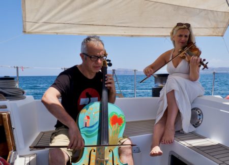 «Abbiamo suonato – ha detto Chiara – in alcuni dei luoghi feriti, marcati da gravi eventi negli ultimi anni. All’Asinara, davanti alla casetta rossa dove si sono dovuti nascondere Falcone e Borsellino; a Genova per il crollo del ponte Morandi; a Capaci in ricordo della strage; alla sede dell’ONLUS di San Vincenzo, dove ho portato i ragazzi del conservatorio di Como a suonare in concerto per i ragazzi delle Vie del mare e per fare una grande festa di chiusura alla fine dei 100 giorni. Ogni volta c’è stato un concerto a terra – in una chiesa o su un palco all’aperto – poi in mare, suonando sulla barca davanti ai luoghi ai quali si voleva rendere omaggio.