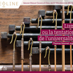 Se Liszt pianista può spesso esasperare, per la sfida, ovunque implicita, al virtuosismo dell’interprete – una sfida che, ai nostri tempi di record pianistici che si moltiplicano allo stesso ritmo di quelli sportivi, rimanendo perennemente incrostati alla superficie dei dischi, mi sembra vana e superflua – il Liszt organista mi suona più verosimile, credibile nelle sue aspirazioni ad abolire le frontiere per espandere la sua musica in uno spazio intemporale, unificato. È il caso dei quattro densissimi, impegnati brani, qui splendidamente registrati da Thomas Monnet, per i quali Liszt ricorre alle tematiche di Johann Sebastian Bach, Allegri, Mozart e Meyerbeer. L’organo è il favoloso Cavaillé-Coll di Saint Maurice de Bécon recentemente restaurato (di Thomas Monnet vi ho già parlato in occasione della sua intensa, suggestiva, registrazione dell’integrale di Jean-Louis Florentz).