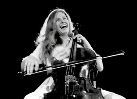 E per dare inizio a questa serie, che spero lunga e ricca di sorprese, una rarità: il retroscena del concerto leggendario, che vide riuniti nell’agosto del 1969, al Queen Elizabeth Hall di Londra, Daniel Barenboim, Itzhak Perlman, Pinchas Zukerman, l’indimenticabile Jacqueline du Pré (nella foto) e Zubin Mehta – già noto direttore d’orchestra, ma che all’occasione riprende il contrabbasso – in una memorabile Trota di Schubert. I cinque giovani solisti, tutti destinati ad essere personaggi di primo piano nel mondo della musica, in attesa di entrare in scena si esibiscono in scatenate improvvisazioni, scambiando gli strumenti. Nel loro gioco si rivela tutta la gioia che la musica può suscitare nella complicità del suonare insieme, una gioia che, tra qualche minuto, animerà la scena e comunicherà al pubblico la divina magia di Schubert.