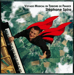 Chi sa perché Stéphane Spira, musicista raffinato e sensibile, ha voluto illustrarsi sulla copertina – in olografia 3D, come le foto miracolose del Sacro Cuore o di Padre Pio … – di questo suo primo cd nelle vesti – e con il mantello rosso – di un super-pianista svolazzante sulla foto aerea di una campagna che si immagina francese, con una mano sulla tastiera del pianoforte, mentre con l’altra ci invita a questo viaggio musicale (difficile tradurre «terroir», un termine associato, di solito in Francia, ai vini o alla gastronomia regionali).