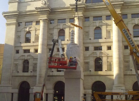 Al di là del giudizio di valore della statua del “dito medio” che Cattelan, con arguta intelligenza, ha posto di fronte alla Borsa, c’è un’osservazione che, mi pare finora sfuggita ai commentatori: quella sulla importanza e il significato insostituibile del piedistallo che la regge.