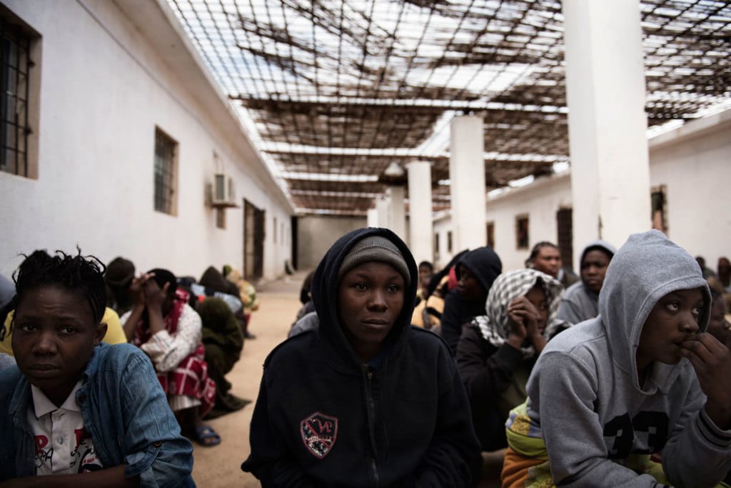 I recenti accordi dell’ Italia per regolare le immigrazioni stipulati con Fayez El Serray, primo ministro del Governo libico di unità nazionale, riconosciuto come legittimo dall’Onu, non sono sufficienti. In realtà si deve fare i conti anche con le diverse realtà tribali e le forze che sono in campo nel vasto territorio libico. Molte tribù della zona sud sono autonome e collaborano con il generale Haftar, capo dell’esercito libico e in realtà responsabile della parte orientale del paese. L’obiettivo del Governo italiano, nel memorando di intesa con la Libia firmato il 2 febbraio di quest’anno, era affidare ai libici il pattugliamento delle coste e il recupero dei migranti che salpano dalle spiagge libiche su imbarcazioni di fortuna. Dall’inizio del 2017 ne sono stati soccorsi più di 30mila, mentre quelli che hanno perso la vita in mare sono stati più di mille. Fayez El Serray, primo ministro del Governo di unità nazionale e unico riconosciuto come legittimo dall’ONU, ha chiesto all’Italia di investire 800 milioni di euro nella cooperazione per fermare l’arrivo dei migranti. Ma molti hanno messo in dubbio la validità di questo impegno perché in molti casi si sono violati e si continua a violare i diritti umani di tanti che fuggono da guerre, da fame, da povertà. Su uno schermo alle spalle degli invitati le foto di Alessio Romenzi di alcuni centri di detenzione in Libia (alcune immagini le trovi a corredo di questo articolo) e degli interventi di soccorso in mare erano fortemente esplicativi delle condizioni dei migranti. Il fotografo ha vinto un prestigioso premio per alcune immagini scattate durante una battaglia a Sirte e i tentativi di soccorso di un soldato.