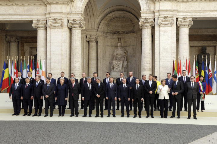 Il 25 marzo è stato celebrato in Campidoglio l’anniversario della firma dei “Trattati di Roma” del 1957 quando i ministri degli esteri di Italia, Francia, Germania Ovest, Belgio, Paesi Bassi e Lussemburgo misero le firme sui documenti a fondamento della nascita dell’Unione Europea. La Dichiarazione di Roma, sottoscritta quest’anno, il 25 marzo, in occasione del sessantesimo anniversario della nascita dell’Unione, dai rappresentanti dei ventisette Paesi che costituiscono oggi l’Unione Europea, (abbiamo visto la foto dei 27 Ministri degli esteri tutti in fila in Campidoglio) ribadisce il valore fondamentale dell’unità europea, la necessità dello sviluppo del mercato unico e l’urgenza di affrontare insieme quattro priorità: la sicurezza, la crescita, il “welfare” e la difesa.