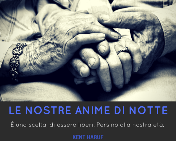 Questa volta il mio incontro con dei personaggi è stato avvincente, ed è avvenuto con quelli di un libro: “Le nostre anime di notte”. Addie e Louis, i protagonisti, sono entrambi in là con gli anni, abitano la stessa piccola città del Colorado, lo stesso quartiere e sono soli. La loro storia mi ha fatto riflettere sul tema della solitudine e degli anni che passano, prima o poi per tutti. Una lettura che fa anche sperare e sognare, perché se si è coraggiosi e disposti a rischiare, non è mai troppo tardi per niente. Il libro è un romanzo breve dello scrittore americano Kent Haruf, un bestseller pubblicato recentemente anche in Italia (NNE editore) che si legge d’un fiato e fa compagnia.