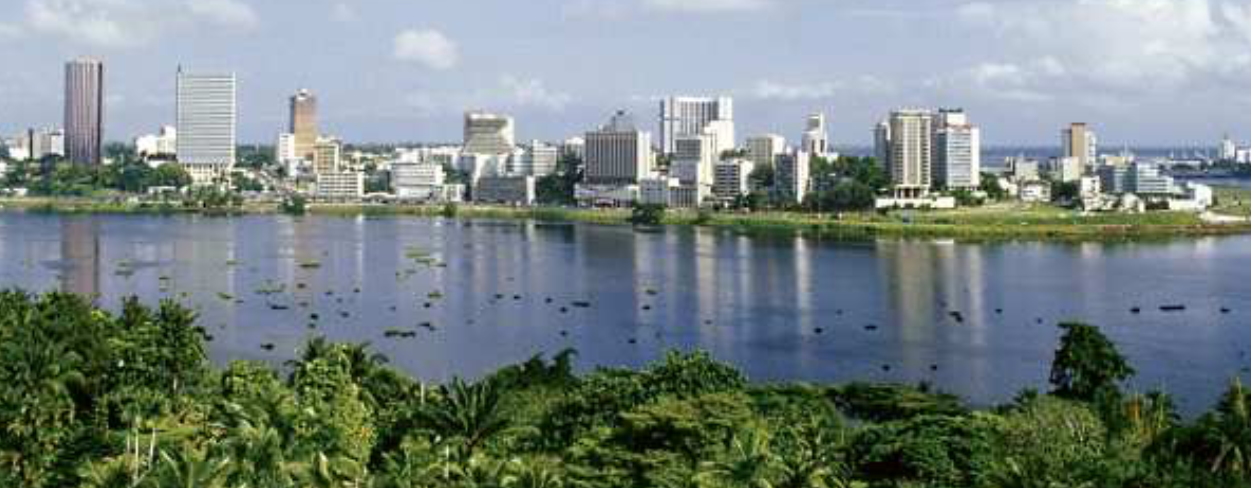 Sospesa tra i placidi canali della laguna Ebrié e l’ondoso oceano, con quasi cinque milioni di abitanti, l’urbanistica degli ultimi decenni si è sviluppata in verticale dando alla città un profilo e uno skyline che a vederlo anche di notte, tutto illuminato e colorato, da l’impressione di essere altrove, non certamente in Africa