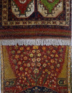 In mostra, oltre ad alcuni gioielli dai soggetti orientaleggianti, il ciclo di opere dei cosiddetti “tappeti stesi” – simulacri di tappeti, di fatto dipinti su telai e superfici sagomate -, delle “Turcate” – chiaro riferimento al folklore turco, con particolare riguardo alle forme culturali e visive della setta dei Dervisci, ma anche all’artista Giulio Turcato -, dei “ritratti” di ambientazione araba, e culmina con il rifacimento di “Mekka Mokka” (1988), una sorta di tappeto-mandala realizzato con l’utilizzo di 50 chili di caffè in grani su carta da spolvero.