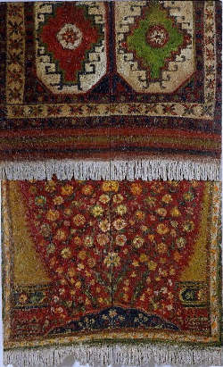 In mostra, oltre ad alcuni gioielli dai soggetti orientaleggianti, il ciclo di opere dei cosiddetti “tappeti stesi” – simulacri di tappeti, di fatto dipinti su telai e superfici sagomate -, delle “Turcate” – chiaro riferimento al folklore turco, con particolare riguardo alle forme culturali e visive della setta dei Dervisci, ma anche all’artista Giulio Turcato -, dei “ritratti” di ambientazione araba, e culmina con il rifacimento di “Mekka Mokka” (1988), una sorta di tappeto-mandala realizzato con l’utilizzo di 50 chili di caffè in grani su carta da spolvero.