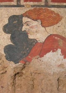 Un demone, una quadriga… un eccezionale ritrovamento nella necropoli delle Pianacce a poca distanza da Sartiano –Siena- nell’ottobre 2003. Scavata nel travertino ad una profondità di cinque metri e corredata di un lunghissimo dromos –corridoio di accesso-, l’incredibile “Tomba della Quadriga Infernale” è custode di un meraviglioso ciclo pittorico, sorprendente per l’originalità dei temi iconografici trattati e per i ben conservati colori vivaci e accesi. Il lato destro del corridoio d’accesso è “scrigno” della raffigurazione più esemplare, la quadriga infernale: due leoni e due grifoni trainano un carro guidato da un demone dall’aspetto inquietante, volto torvo e sguardo spiritato; probabile rappresentazione del demone Charun -omologo del Caronte greco, traghettatore delle anime nell’Ade-, è qui, per la prima volta, nelle vesti di auriga. Oltre la nicchia lungo il corridoio poi, una seconda pittura di grande vivacità raffigura due figure maschili distese su una kline –letto per banchetto- che si scambiano un sentito gesto d’affetto, anch’esso unicum nell’arte etrusca, probabile rappresentazione dei due defunti, padre e figlio, a convito nell’Ade; accanto a loro un servitore pronto a filtrare il vino, mentre un fregio di delfini che si getta tra le onde corre al di sotto e ne simboleggia il passaggio al mondo ultraterreno. Infine, la camera di fondo di forma quadrangolare racchiude la straordinaria immagine di un serpente a tre teste –mostro dell’oltretomba- e di un ippocampo. Eccezionale anche il corredo, recuperato in stato frammentario e sottoposto poi ad un profondo restauro: tre stupende coppe a figure rosse, ceramiche grigie e a vernice nera, singolari brucia-profumi decorati con uccelli, pedine da gioco in pasta vitrea.