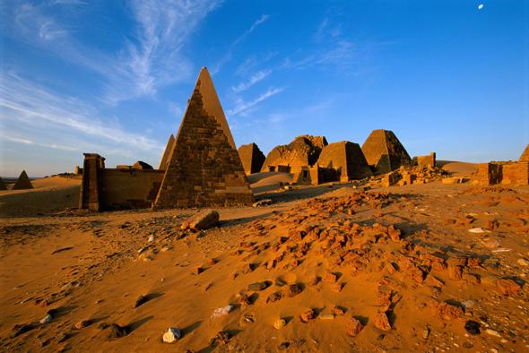 Breve visita di Khartoum, in attesa dei permessi di viaggio, percorrendo il verdissimo viale lungo il Nilo Azzurro, costeggiando il Palazzo Presidenziale ex-Palazzo del Governatore Anglo-Egiziano dove, dopo un lungo assedio da parte delle forze mahadiste, nel 1885 venne decapitato il Generale Gordon. Visita del Museo Archeologico che contiene numerosi oggetti a partire dal periodo preistorico fino al periodo egizio e meroitico. Antichissime ceramiche, statue in granito, bassorilievi, sarcofagi, gioielli ritrovati grazie alle numerose missioni archeologiche, una splendida collezione di affreschi di tema cristiano recuperati dalla cattedrale di Faras. Nella parte esterna del Museo si trovano tre interi templi (Semna Est, Semna Ovest, Buhen) salvati dalle sponde del Nilo, quando si creò il lago Nasser, e trasportati qui dall’Unesco negli anni ’60 del secolo scorso. In tarda mattinata partenza verso Nord. Si costeggiano le belle formazioni granitiche della Sesta Cateratta e proseguendo ancora verso nord, improvvisamente dalla piatta distesa desertica si innalza una collina, parzialmente ricoperta di sabbia gialla, sulla quale svettano le piramidi della Necropoli Reale di Meroe. Cena al campo e pernottamento in tenda.